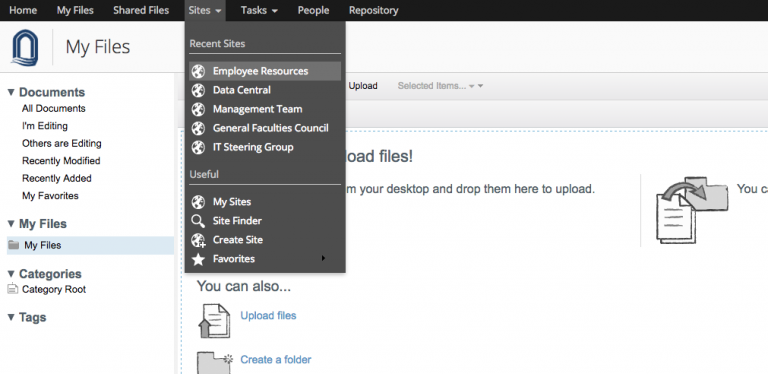 Now, when you login to Alfresco, you’ll be able to locate logo files, letterhead and powerpoint templates, to name a few, under a site called “Employee Resources”.