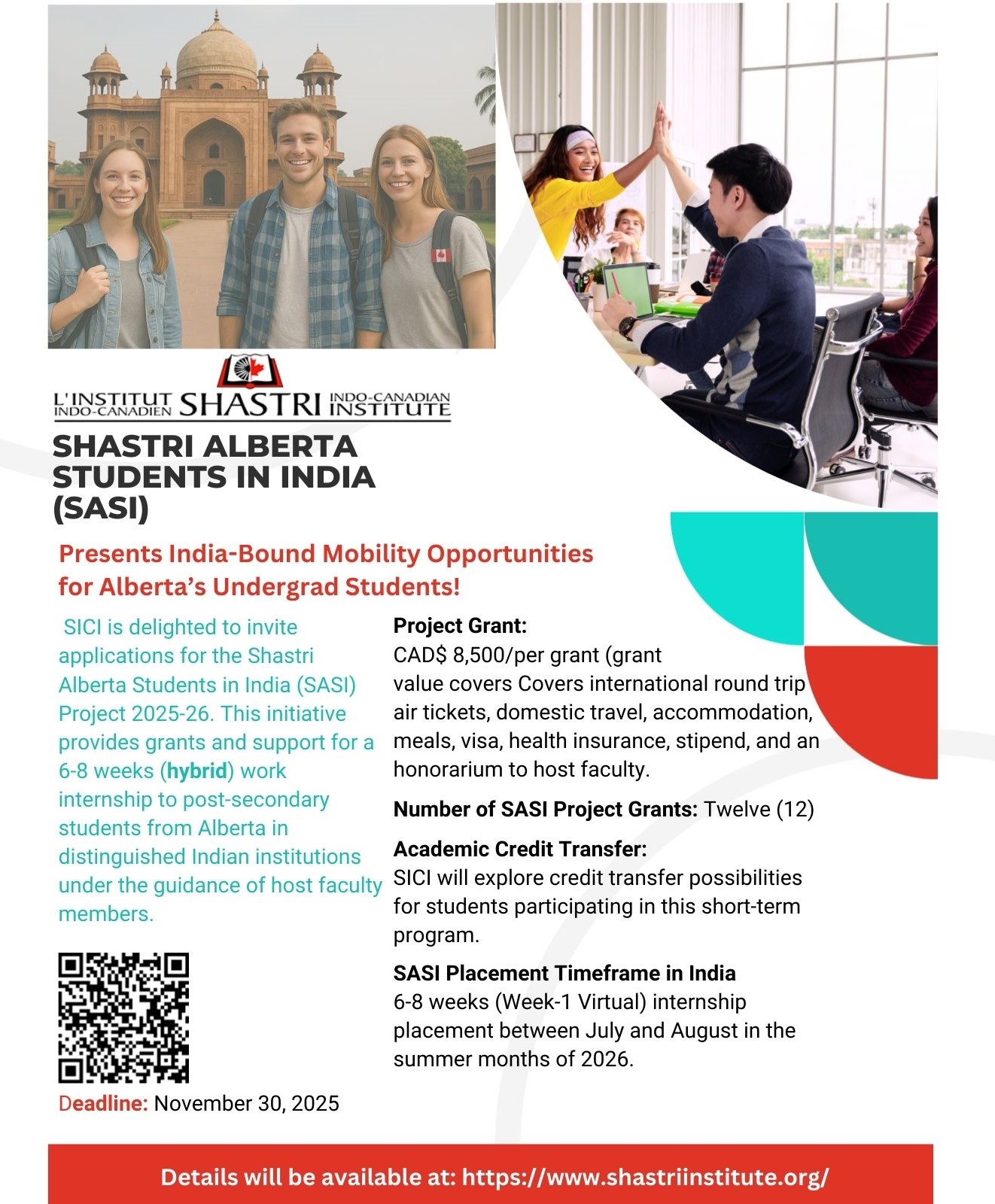 India: Shastri AlbertaStudents In India (Sasi) Internship Project, India, organized by Shastri Indo-Canadian Institute (SICI), July to August 2024