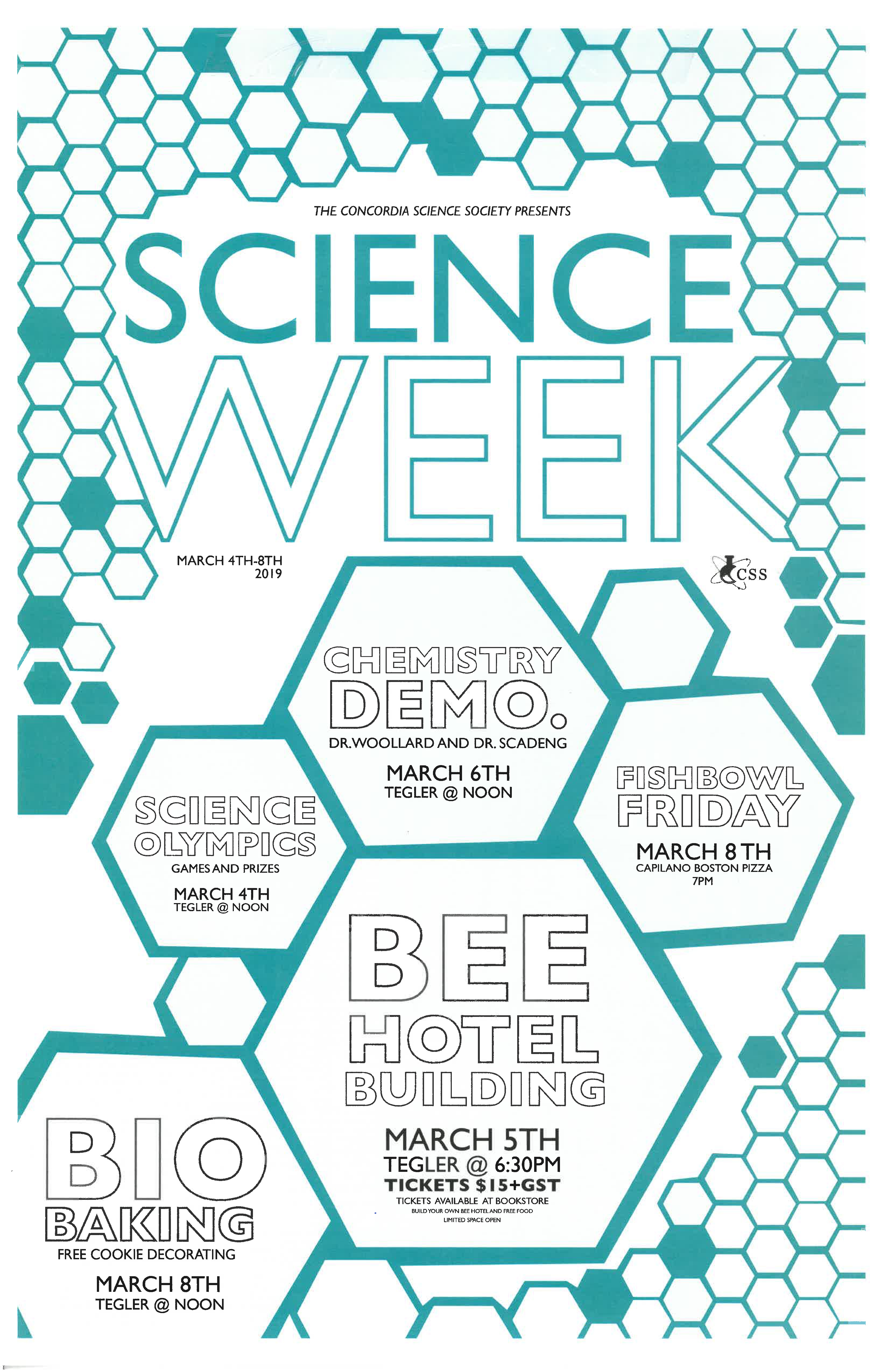 Everyone is invited to attend Science Week events, sponsored by the Concordia Science Society, starting on March 4 to March 8, 2019